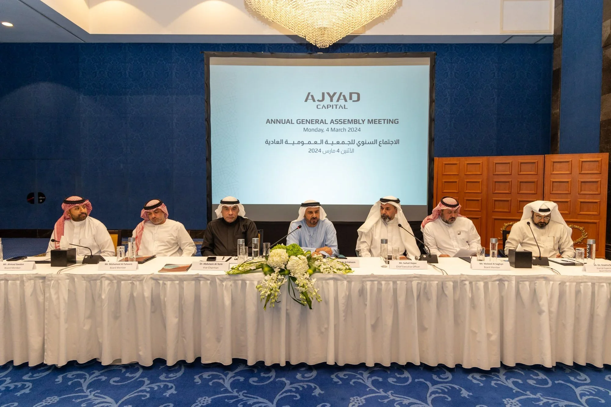 Ajyad Capital B.S.C. (c) (Ajyad) held its Annual General Meeting on Monday, 4th March 2024, at The Ritz-Carlton, Bahrain, in the presence of Ajyad’s Board of Directors, Shareholders, Ajyad’s Executive Management team, and representatives from KPMG, the Central Bank of Bahrain, the Ministry of Industry and Commerce.